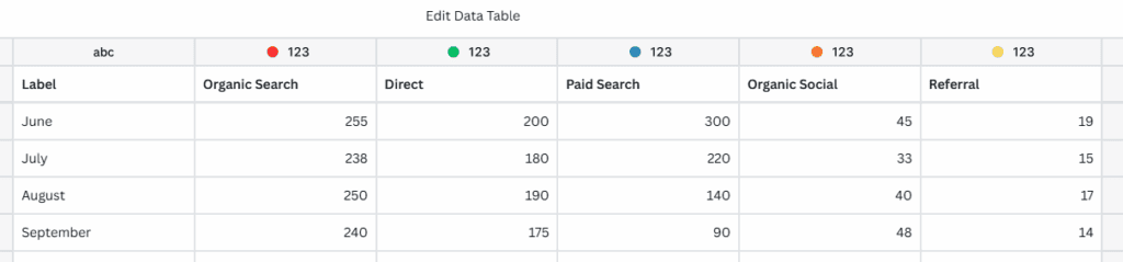 Add the ‘Sessions’ numbers beside each of those sources to your graph generating software of choice. We use Canva to do stuff like this as it’s lots quicker and easier to use than Excel.