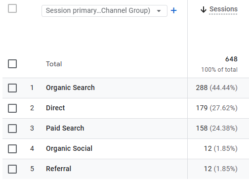 Once you have set your dates, on the left-hand side of the table you will see the different sources of traffic to your website.